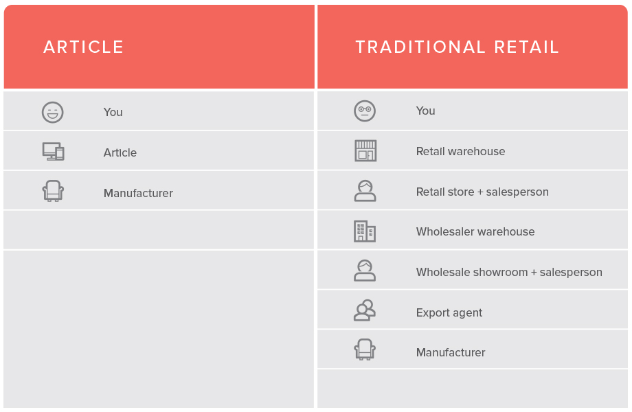 Here’s a little breakdown on how Article makes it possible to deliver beautifully designed modern furniture, with outstanding attention to detail, at fair prices: